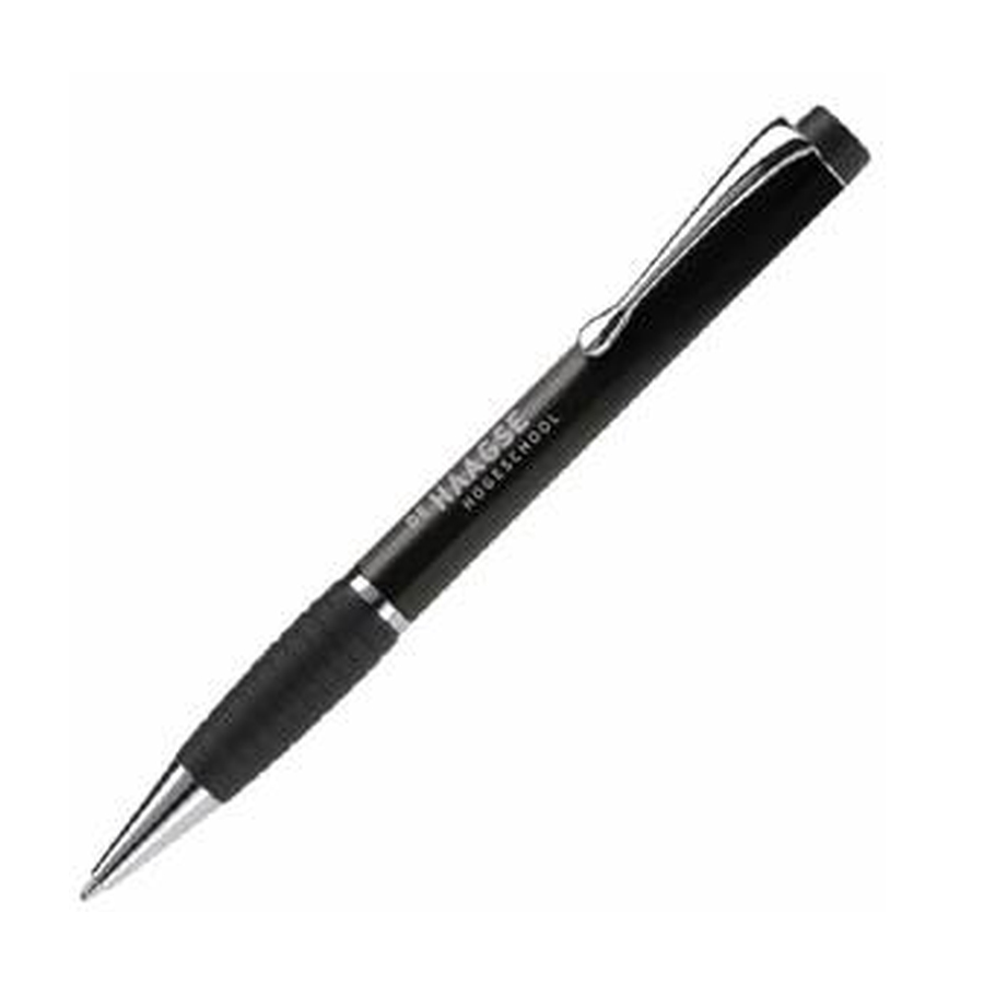 Gelakte metalen balpen met verchroomde delen en rubbergrip in zwart. Zonder giftdoosje