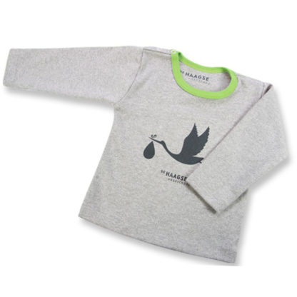 Baby T-shirt grijs/groen (boordje) met lange mouw