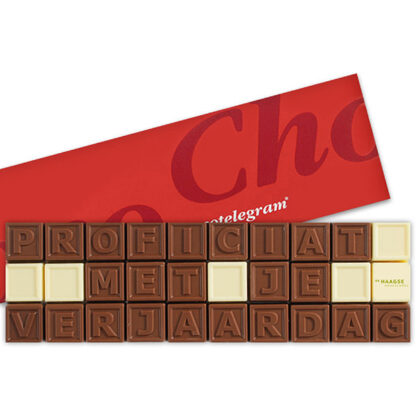 The chocolate squares are made of the finest Belgian chocolate (Cocoa Horizons-Certified from the top brand Barry Callebaut), milk, white and/or dark couverture | With 3 rows of 10 characters you can create your own sweet message | The Chocotelegrams are packed in a luxurious red gift box | Order quantity > 5.000 pieces, price on request | Available in multiples of 20 pieces | Fast delivery | Available in bulk delivery at 1 address or sent individually to multiple addresses